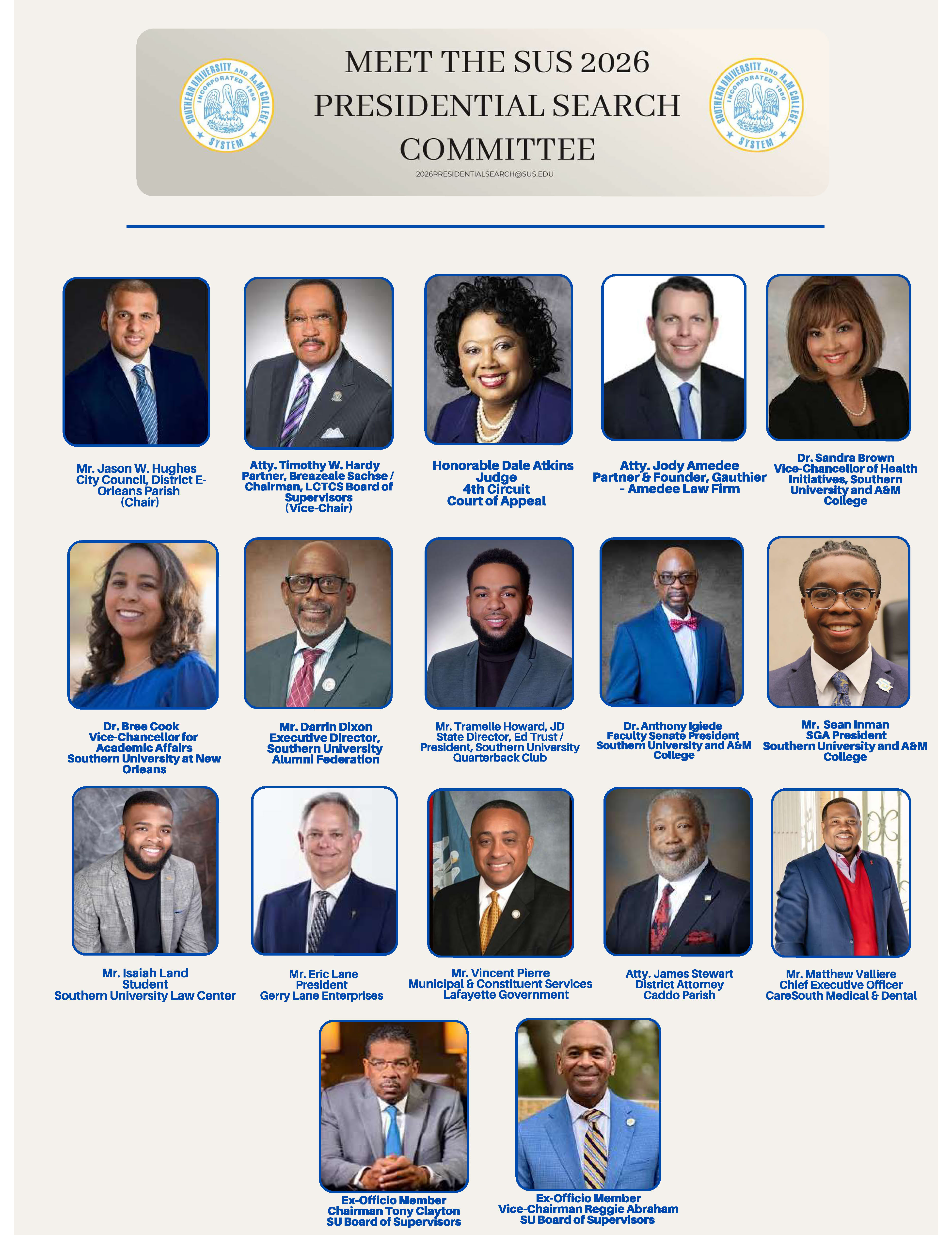 The Southern University Board of Supervisors has officially launched the Southern University System’s presidential search and announced the members of the committee that will guide the process of selecting the next president of the nation’s only historically Black university system.